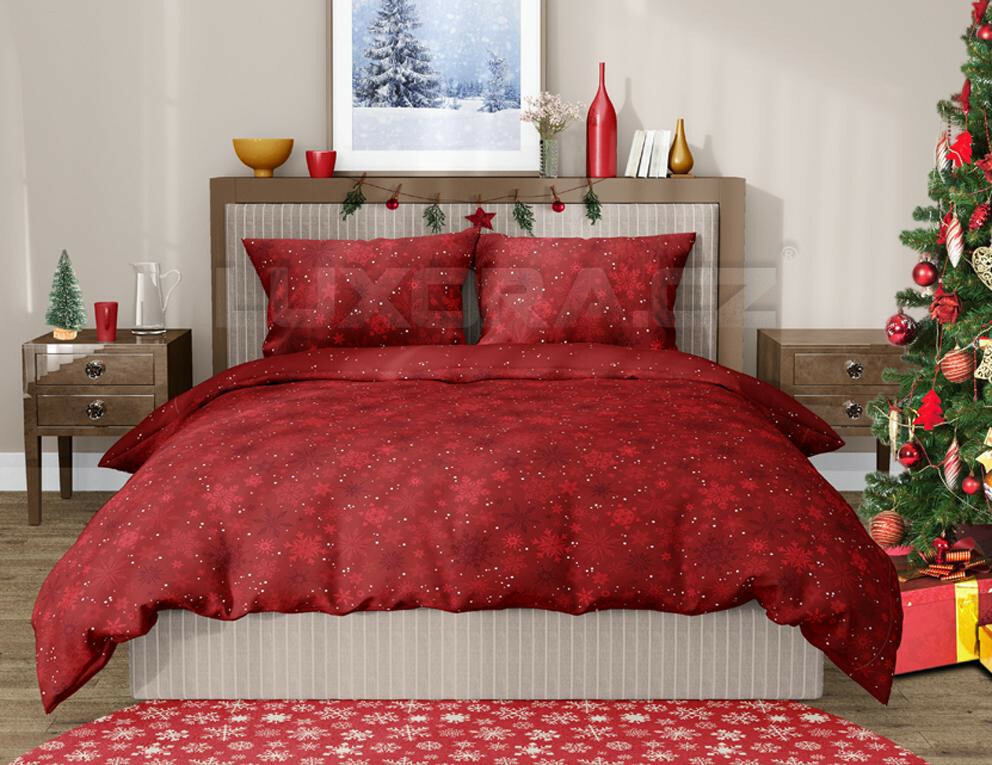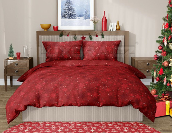 Červené Vánoční povlečení Vločka