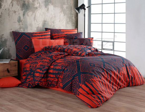 - Krásné povlečení do moderních interiéru v odvážné kombinaci modré a červené barvy.