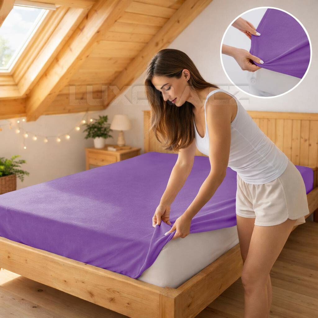 Hladké napínací prostěradlo v krásně fialové barvě.